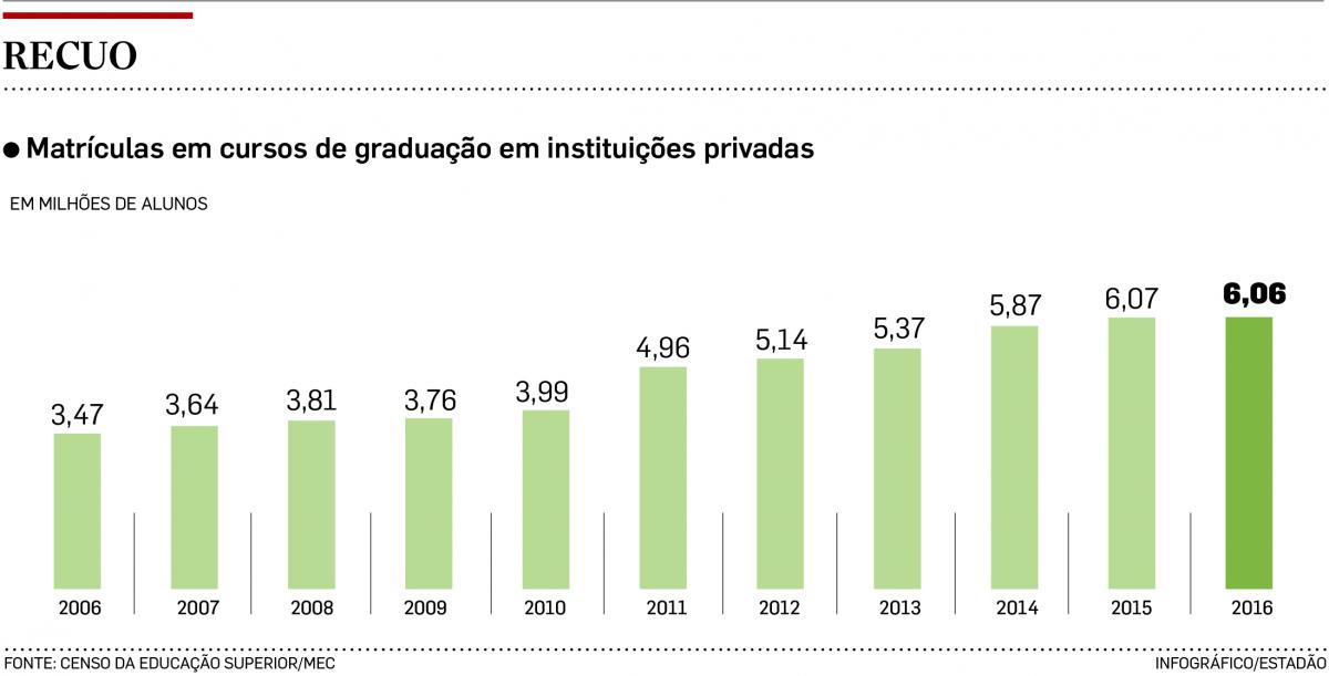 Pela primeira vez, desde 1991, as instituições particulares não tiveram aumento de matrículas Isabela Palhares e Luiz Fernando Toledo, O