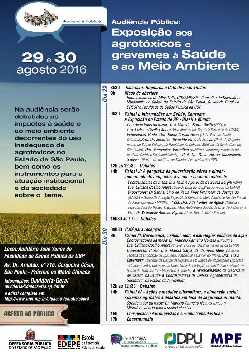 Defensoria Pública do Estado de São Paulo, Defensoria da União e Ministério Público Federal convidam a população para audiência pública